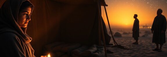 Hannah sussurra no templo de Siló, os dedos ainda úmidos do choro, e promete ao Senhor o filho que ainda
