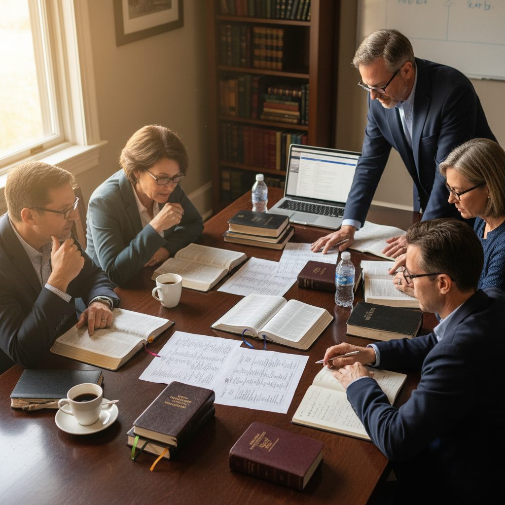 Use a matriz para fundamentar a recomendação ao conselho teológico ou comitê. Anexe trechos comparativos às atas da reunião.