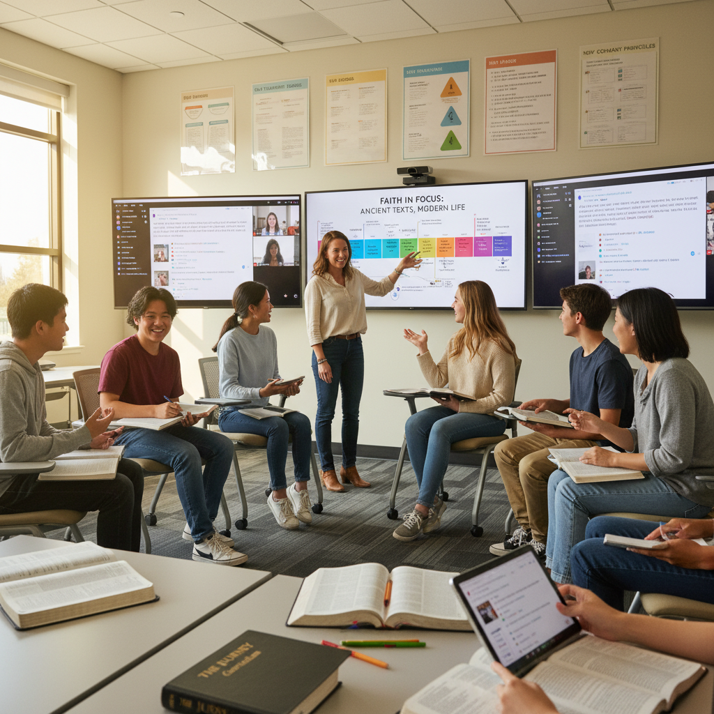Currículo bíblico híbrido une encontros presenciais e atividades online para gerar aprendizado consistente ao longo do ano. Quer um modelo com metas mensuráveis e fácil de aplicar em 12 meses?