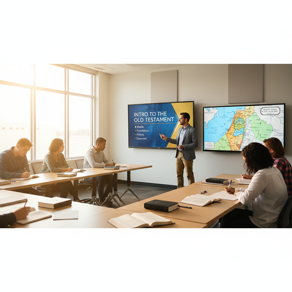 Curso introdutório ao Antigo Testamento desenhado para igrejas que querem formar líderes em tempo real. Em apenas 8 semanas você terá currículo, objetivos por aula e recursos práticos para aplicar imediatamente.