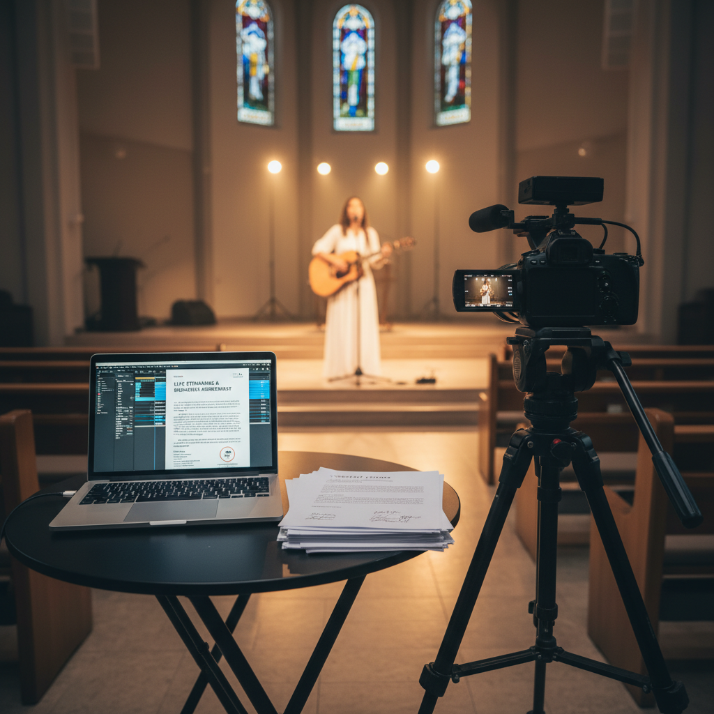 Serviços como CCLI oferecem licenças específicas para igrejas, incluindo relatórios de uso que simplificam a prestação de contas.