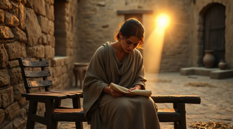 O velho banco de madeira rangia sob o peso de duas cadeiras vazias. À sua frente, uma mulher segurava um pedaço de tecido com os dedos imobilizados pelo frio do verão que já não aquecia. Ela abriu a Bíblia ao acaso e seus olhos caíram em Jó. Naquelas páginas encontrou um espelho: perguntas sem respostas, silêncio celeste, uma afirmação que entrou como luz no barro — “eu sei que o meu Redentor vive” (Jó 19:25).