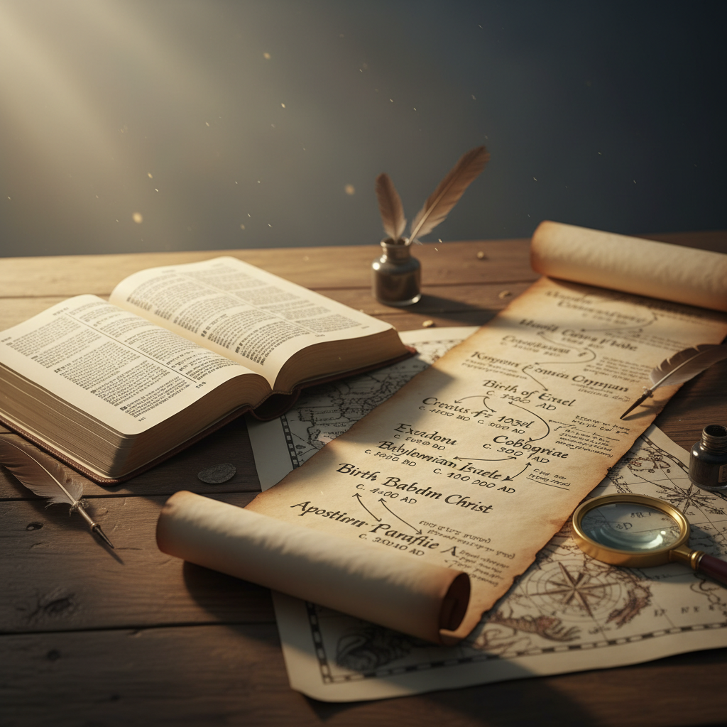 Uma linha do tempo bíblica é uma representação visual que organiza eventos, personagens e livros das Escrituras em ordem cronológica. Ela facilita compreensão histórica, identificação de paralelos e aplicação prática no ensino.