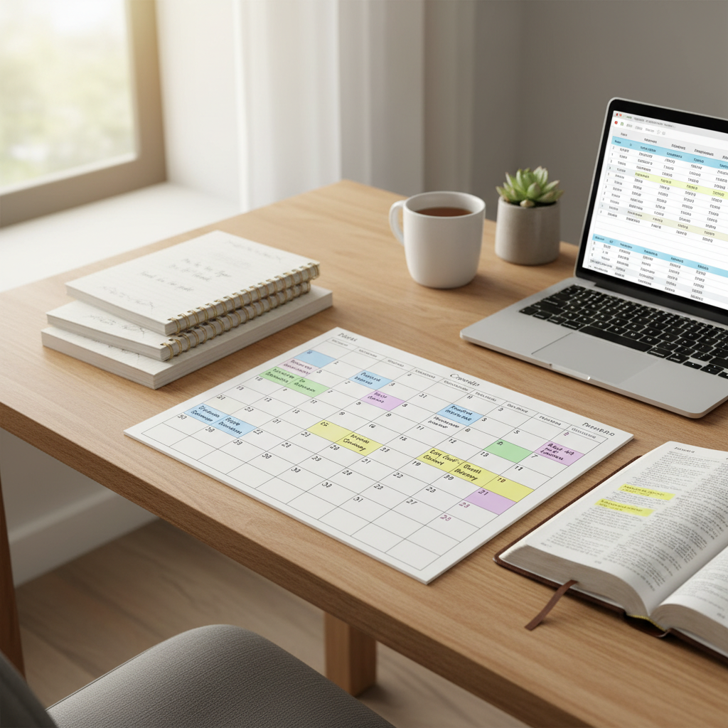 Currículo bíblico anual bem planejado evita improviso e garante progresso espiritual contínuo. Sem um calendário temático e metas claras, ensino torna se episódico e sem impacto.