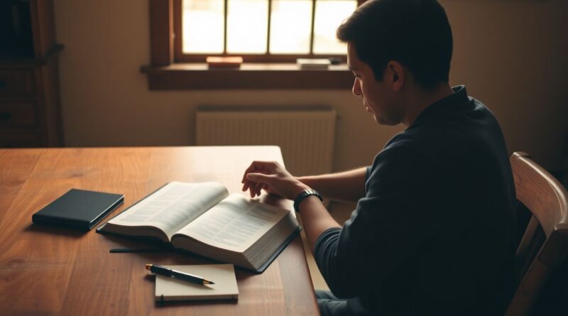 Escolha um foco por mês: evangelho, cartas, sabedoria ou temas teológicos. Use um cronograma realista: 15 a 30 minutos por dia. Registre o capítulo e um versículo chave.